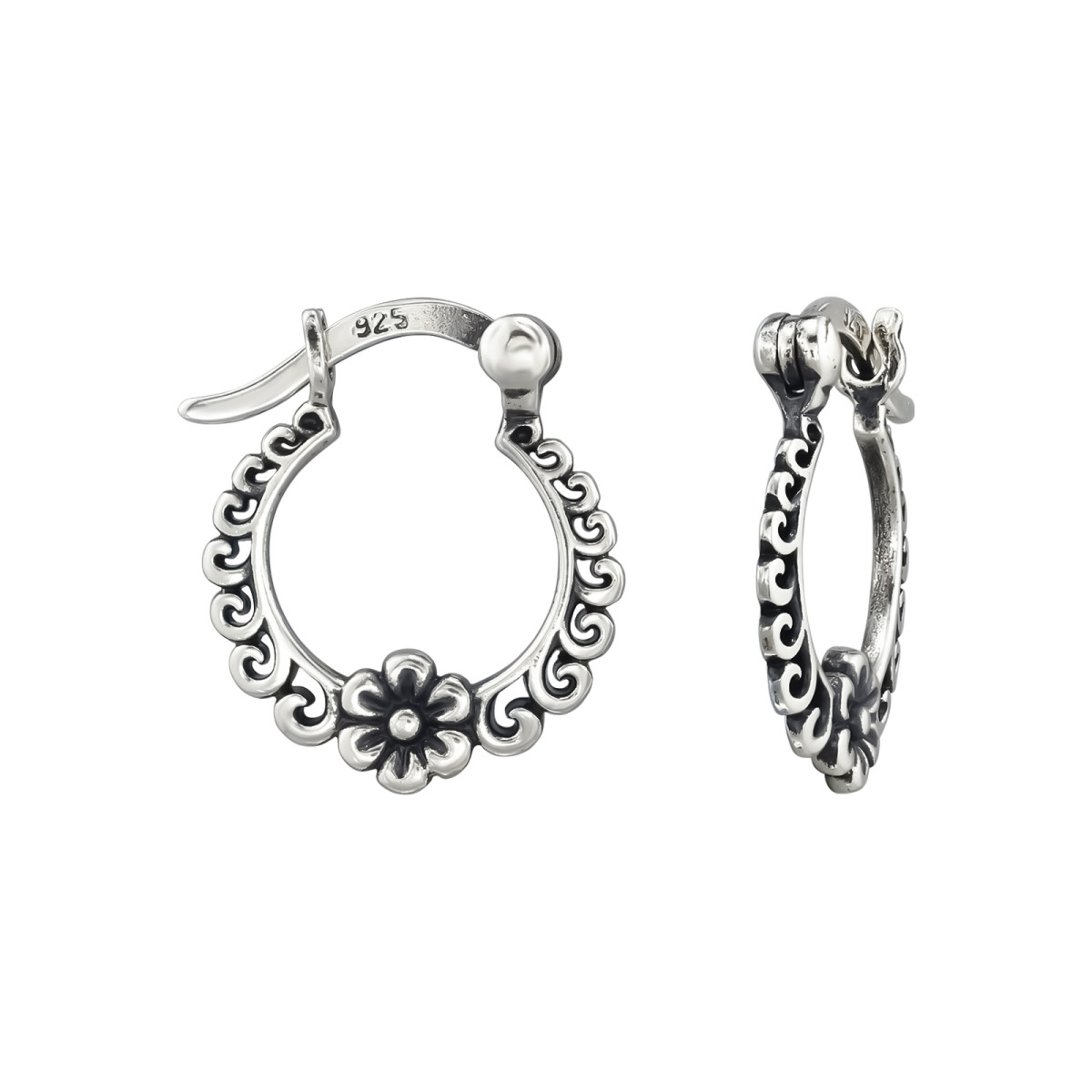 TAG-ek: Virág, oxidált, francia, záras, karika, fülbevaló, 95, ezüst